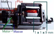 So sieht der eingebaute und verdrahtete Decoder aus. Die Litzen müssen nahe am außenrand und nahe zum Motor