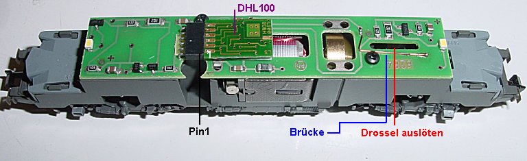 Von der Platine wird der Analogstecker entfernt und der Decoder DHL100 oder auch DHL 161 Multiprotokoll SX/DCC