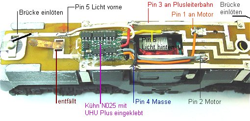 Umbauanleitung: Hier mit einem Kühn N 025 DCC Decoder der doppelseitig beStückt ist. Darum eine