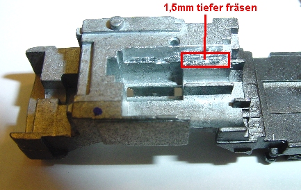 tiefer fräsen und nach Einlegen des Motors mit Doppelklebeband den Decoder mit Litzen aufzukleben.