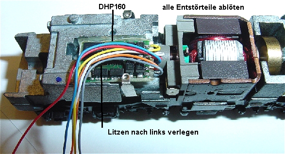 Litzen sollten über den Decoder nach links gelegt werden und dann an der vorhandenen Öffnung der Platine nach