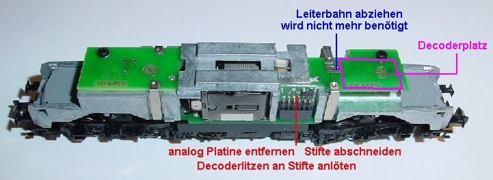 eine seitliche Position des Decoders zu schaffen. (Einfacher ist Decoder oben auf Platine)
