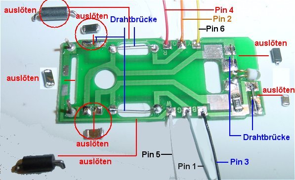 Da je nach benutztem Decoder Programmierprobleme auftreten können habe ich die entsprechenden Bauteile alle abgelötet.