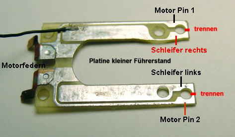 Schleiferfedern, 2 je Seite, nicht verbogen werden. Nun kann der Motor entnommen werden und die Platine zur Bearbeitung