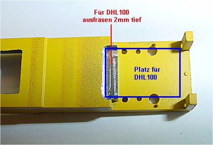 anzeichnen wie weit die Ausfräsung sein muss. Auf alle fälle passt der DHL050 nicht ohne fräsen in das kleine Führerhaus.
