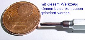 solchen Kreuzschlitz Schraubenzieher kann man auch die Schraube unter dem Gestänge ca. 1 1/2 Umdrehungen lösen. Dies ist
