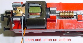 Motor wieder eingesetzt. Unten die orangefarbene Litze oben die graue Litze.