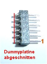 Ist kein Stecker zur Hand, kann man auch die Dummyplatine mit einem Seitenschneider abschneiden und die Litzen an die verbliebenen Pin löten.