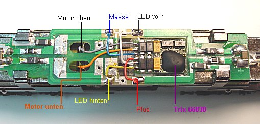 Umbauanleitung: Es passt ein TRIX 66836 oder 66838 Multiprotokolldecoder in den Ausschnitt der Platine