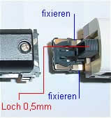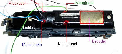 Lötstelle der einzelnen Litzen gebohrt und mit Nagellack isoliert. Der Platz für den Decoder wurde ausgefräst damit er weiter