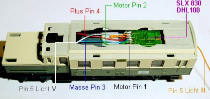 Frontbeleuchtung gelötet, da diese Einheit nur in eine Richtung Führt. Bei Lichtwechsel muss LV an Pin 6 und LH an Pin 5,