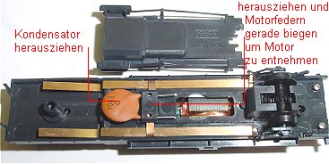 ausrasten und Motorfedern gerade biegen. Jetzt kann der Motor nach oben herausgenommen werden.