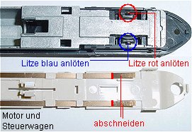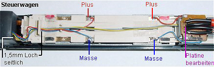 Da der Steuerwagen zur Stromversorgung mit herangezogen wird und sowieso zwei Litzen der Beleuchtung vom Decoder im Motorwagen