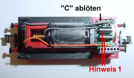 programmierunwillig sind sollte der Kondensator ausgelötet werden. Dazu wird das Führerstandsgehäuse seitlich