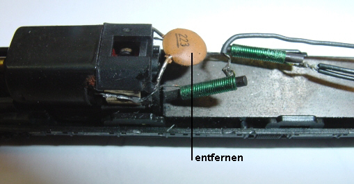 Vom Motor den Kondensator sowie die beiden Drosseln ablöten.