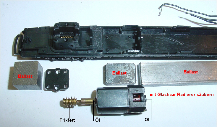 Wer den Triebzug gebraucht gekauft hat sollte nicht vergessen den Rotor des Motors sauber zu machen, beide Wellenenden zu ölen