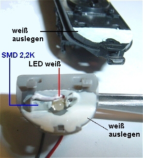 Wer doch Lichtwechsel rot / weiß haben möchte kann zur Vereinfachung die neuen Duo LEDs rot / weiß (0605 Nr. 205508 von Ledbaron)