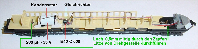 mit angelöteten Kupferlackdrähten benutzen. Dann jedoch muß im Steuerwagen ein Schaltdecoder eingebaut werden.