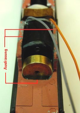 leichte Ausfräsung damit das Ballastgewicht wieder einwandfrei in das Unterteil einrastet.
