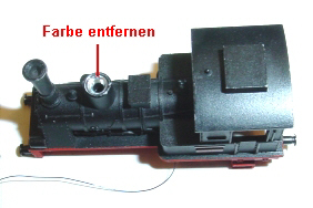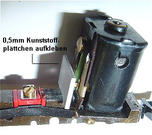 je eine Laterne vom Tender einer BR44 aufgeklebt.) Auf den Motorträger wird ein Platinenrest 0,5 mm dick mit zwei