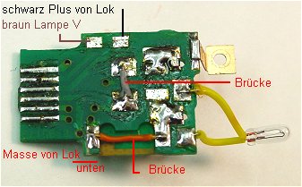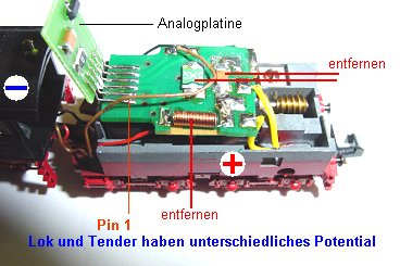 Die Analogplatine hochbiegen und auslöten. Da bei einigen Loks der Kondensator und die beiden anderen Teile eine