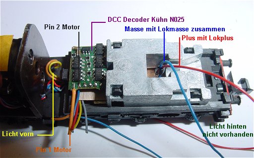 den Masse und Pluskabel von der lok zusammengelötet und dann erst an den Decoder.