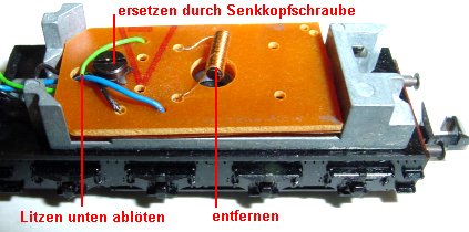 Tenderplatine losschrauben, die Schraube wird ersetzt durch eine Senkkopfschraube welche später bändig mit der