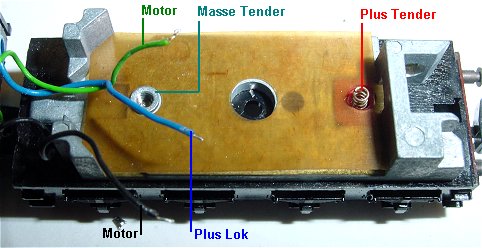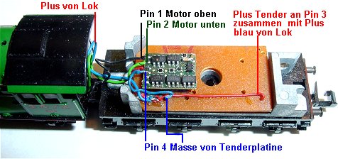 von der Lok und rot vom Tenderplus angelötet. Pin 4 blau von Tendermasse.