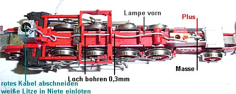 Bild zum Tender verlegt. Damit ist die Lok fertig und das Gehäuse kann wieder aufgesetzt werden.
