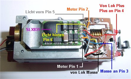 (Der SLX870=DHL160=Trix 66838 DCC/SX Decoder hat gleiche Abmessungen und kann also genauso benutzt werden.)