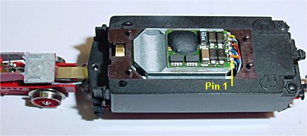 Die Motorabdeckung wird nach Verlegen der Litzen von der Lok wieder aufgesetzt und der Decoder aufgeklebt