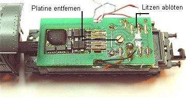 und die beiden seitlichen Litzen werden abgelötet.) weiß, orange und grau kommen anschließend von der Lok direkt