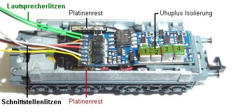 Hier nun die Ansicht mit Decoder. Er ist links mit Doppelklebeband festgeklebt, rechts liegt er nur auf. Durch
