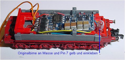 Hier im Bild sitzt der Decoder etwas weiter nach links. Dadurch ist etwas Platz für die Original Birne. An den