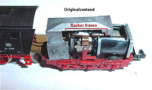 Tender vor dem Umbau. Ballastgewicht abnehmen, dieses wird bearbeitet da der Decoder unter das Gewicht über dem
