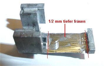 Von dem gewicht wird an der Unterseite 0,5 mm abgetragen, (fräsen oder Feilen).