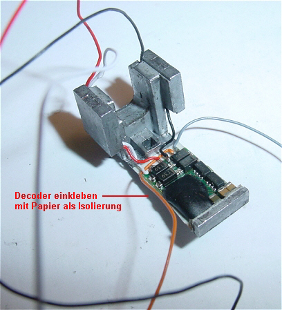 hochgeklappt um auch hinten eine Isolierung zu haben. Decoder wird nun auf das Ballastgewicht mit Sekundenkleber