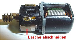 Die beiden Stromabnehmerfedern sind abgelötet und werden gekürzt.