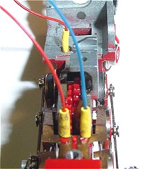 Drehgestell wurde auf die Radschleiffeder links gelötet). blau Pin 4 an von Massefeder. weiß an Lampe vorn, gelb