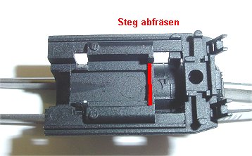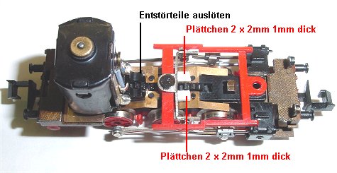Hier noch einmal die Lage der beiden Isolierplättchen die den Decoder vom Zahnrad frei halten.