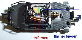 was nicht nötig ist. S.o. An die Stromabnehmerfedern an den Rädern sind zwei neue Litzen angelötet, da sie