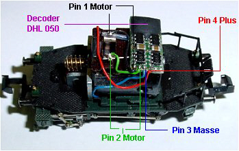 Decoder DHL050 hat zwar ebenfalls 7 Anschlüsse, gebraucht werden aber nur Pin 1 bis 4, da Licht vorn und hinten