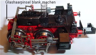 Beim Ausbau des vorderen Drehgestells auf die Feder achten! Die Kupferfeder mit einem Glashaarpinsel blank machen.