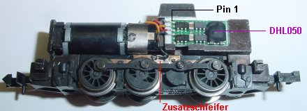 links. Pin 3 rot an Schleifer rechts und Pin 4 schwarz an Schleifer links. Da die Lok keine Beleuchtung hat