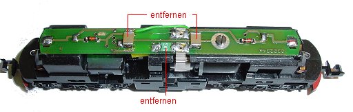 ausgelötet. In 20% der fälle läuft die Lok auch, wenn diese Drosseln / Kondensator drin bleiben. Besser ist