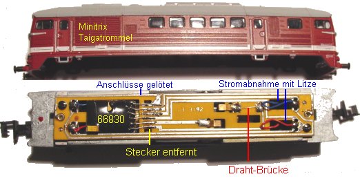 Umbauanleitung: Es passt ein TRIX 66830 in die Schnittstelle.