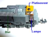plan gefeilt bis auf höhe des Ballastblei. Die 2 Platinenreste werden wieder eingebaut. Lampen vorher prüfen.