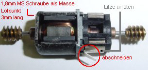 Litze angelötet und wieder ein Stück Schrumpfschlauch über die Lötstelle gezogen. Jetzt Motorlager leicht ölen