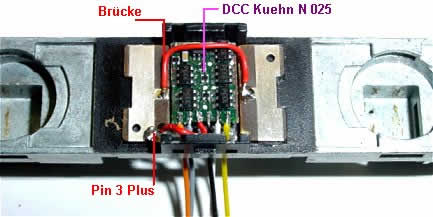 Umbauanleitung: Hier wird ein DCC Kuehn Decoder N 025 unter die Lok gebaut.