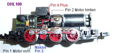 Umbauanleitung: Es passt ein TRIX 66836 / DHL100 seitlich, anstelle der Entstörplatine, mit kleiner Ausfräsung